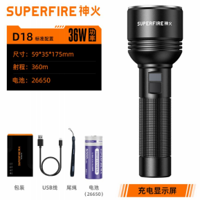 标准套装配置:手电筒+USB线+尾绳+22650电池+包装