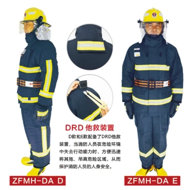 本款消防员灭火防护服/指挥服精准匹配消防一线作业与现场指挥双重核心场景,以“极致防护、智能救援、舒适耐用”为核心设计理念,采用多层阻燃复合织物材料构建全维度防护体系,主体采用沉稳专业的藏蓝色调,符合消防装备视觉规范与实战识别需求。产品创新推出D、E双版本外层材质配置,同时在舒适层集成DRE他救装置,既保障TTP≥28cal/cm²的卓越热防护性能,又突破性提升紧急救援便捷性,全方位兼顾作业安全性与实战灵活性,为消防人员构建“防护+救援”双重安全屏障。