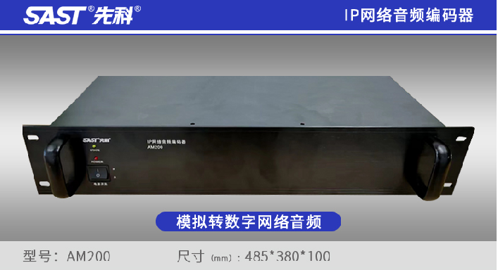 IP网络音频编码器 1.网络转模拟音频 2.模拟转网络音频 3.机器尺寸:长485*宽380*高100mm 4.包装尺寸:515x460x180mm