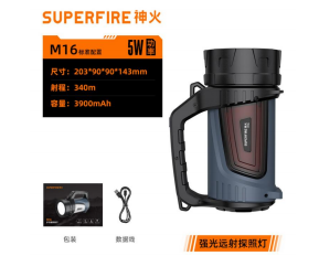 1、14颗高质量LED灯芯; 2、三种主灯,四种警示灯:红光/红闪/黄光/黄闪; 3、内置13AH大容量锂电池组,聚光强光16H,泛光强光12H聚泛强光8H,无极调光后最长续航99H; 无极调光后最长续航99H; 4、带LCD显示屏,实时显示照明模式、电量、剩余使用时间