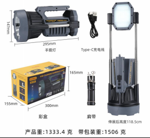 光源 8PCS聚光灯+8PCS泛光灯 亮度 >4000Lm 档位 泛光/聚光/聚泛光, 红蓝警示灯 额定电压 DC22V 材质 PP+压铸铝 功率 50W 防水等级 IP66 电池 10Ah 尺寸 500*150*170mm 升起尺寸 500*150*1280mm 续航 10H~16H 充电 <6H 标准套装配置 移动灯+螺丝+说明书+包装盒